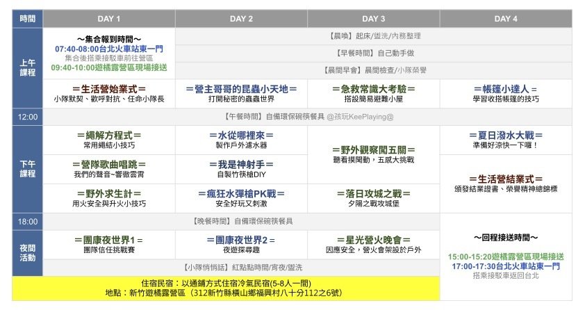 野外生活夏令營【 原價 】單人From TWD