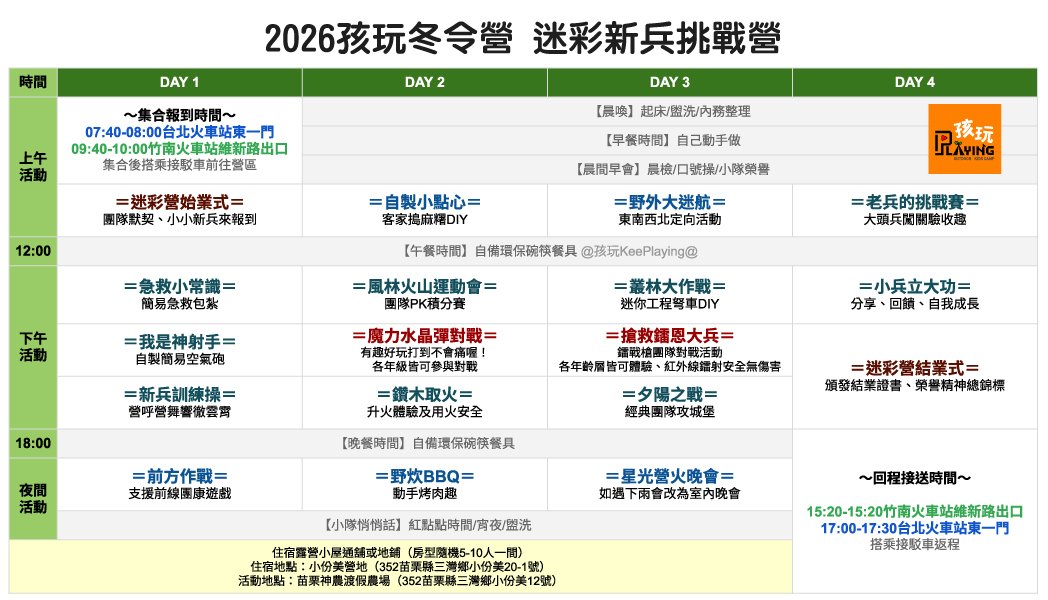 迷彩新兵挑戰冬令營【 原價 】單人From TWD