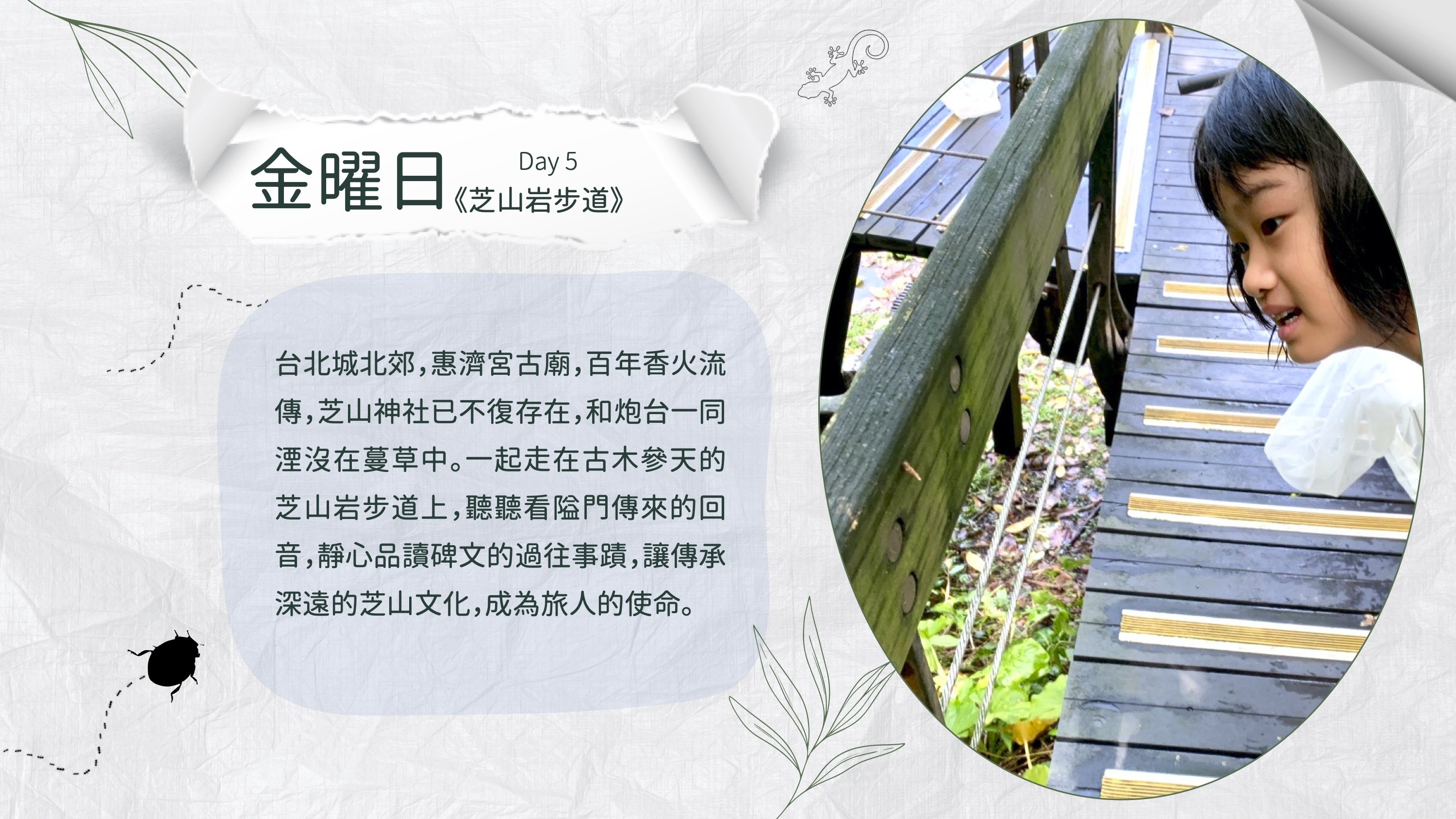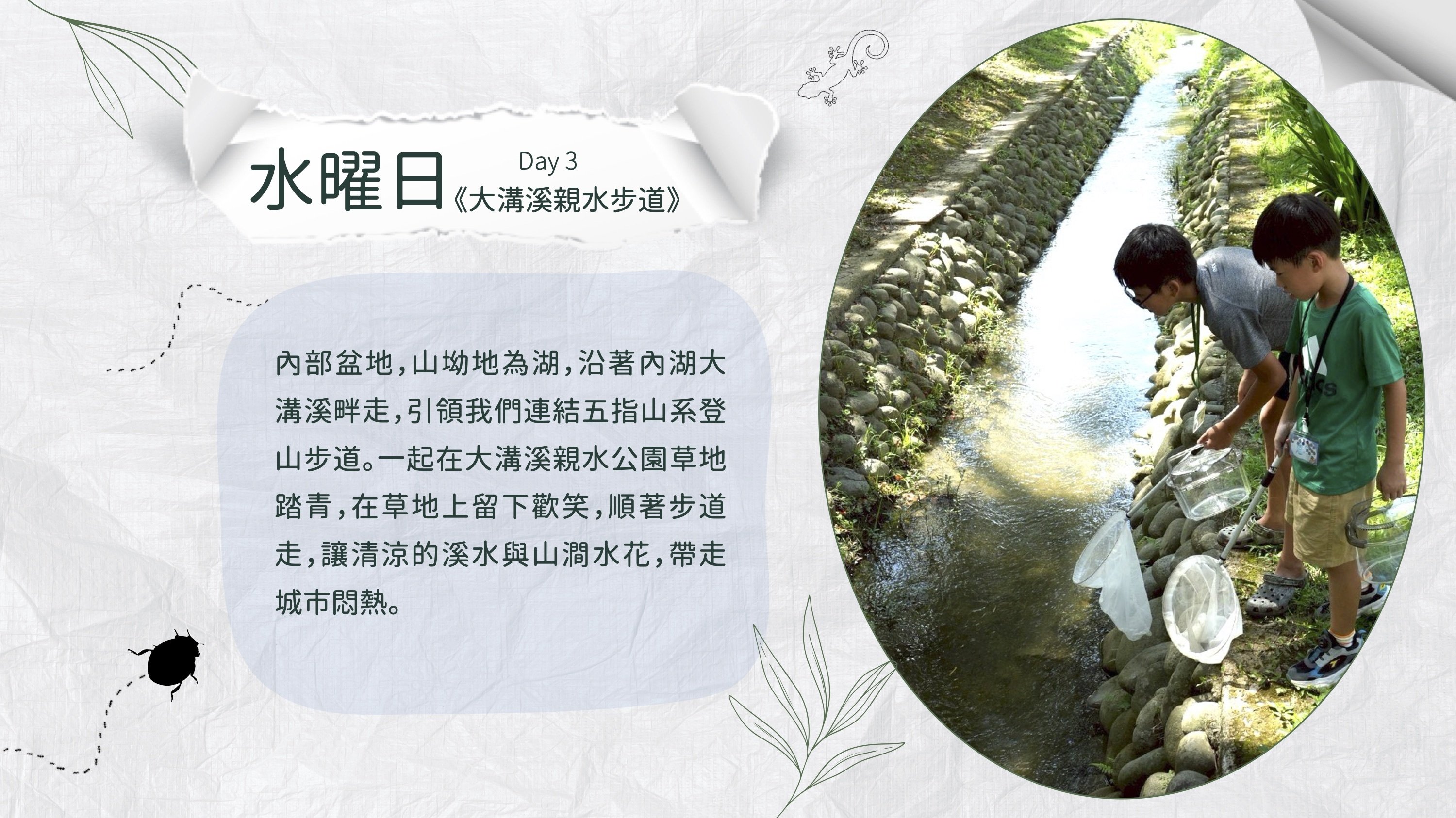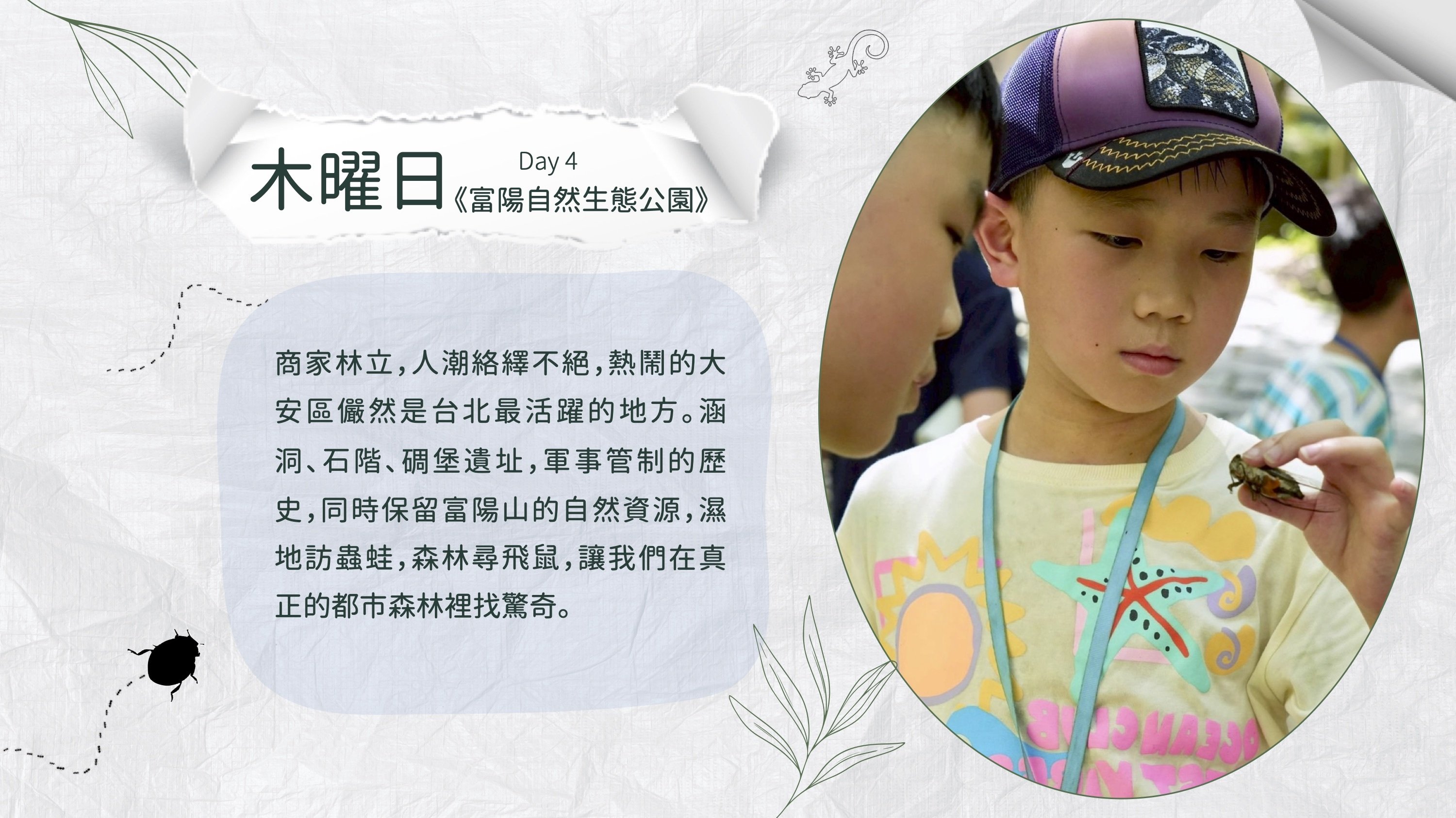 • 森林健走 × 體能鍛鍊:在專業老師帶領下,進行安全有趣的郊山健走,呼吸大自然的純淨空氣,提升孩子的心肺耐力與肢體協調,強健體魄又放鬆心情。 • 生命教育 × 尊重自然:親近自然、認識生命,從互動中學習尊重與珍惜每一個生命,培養孩子的同理心與環境意識。 • 採集體驗 × 生態探索:動手體驗採集昆蟲、觀察動植物,激發孩子對自然萬物的好奇心與探究力,發現生命的奧秘就在身邊。 • 生態紀錄 × 統計分析:透過觀察記錄、生物分類與簡單統計分析,訓練邏輯思考與科學觀察能力,讓學習不只好玩,更有深度。 • 智能發展 × 多面向學習:從觀察、動手到團隊互動,全方位啟發孩子的專注力、判斷力與問題解決能力,培養面對挑戰的自信與韌性。 • 情境學習 × 自主成長:營隊設計融入生活情境,引導孩子主動學習、樂於探索,培養責任感與團隊合作精神,讓學習變成一場快樂的冒險!