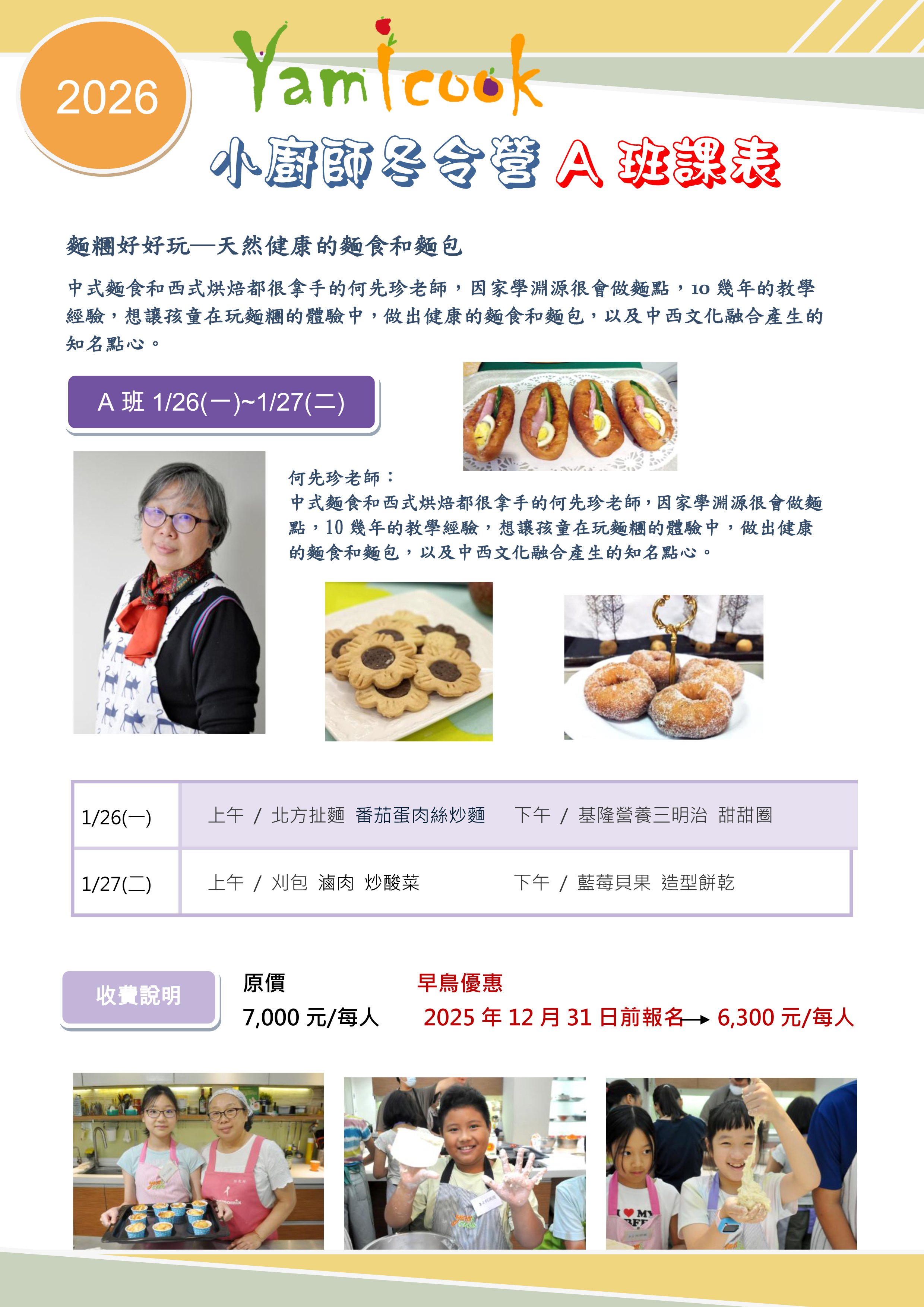 Is 【三~九年級|A】廚藝教室小廚師二日冬令營 : 麵糰好好玩─天然健康的麵食和麵包 open for online booking?