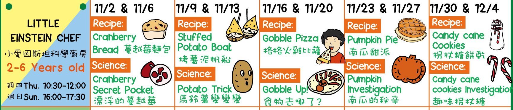 【2~6歲|英文|內湖】小小愛因斯坦的科學廚房 Little Einstein Chef 近期活動/課程時間?