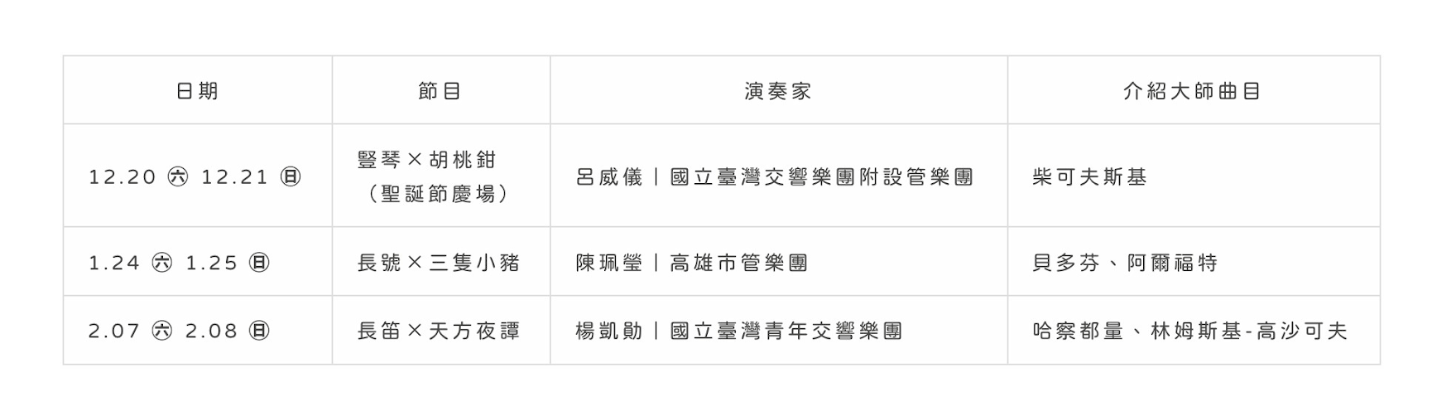 【1~6歲|學齡前|幼兒課程】小小音樂大師課:臺中國家歌劇院班近期活動/課程時間?