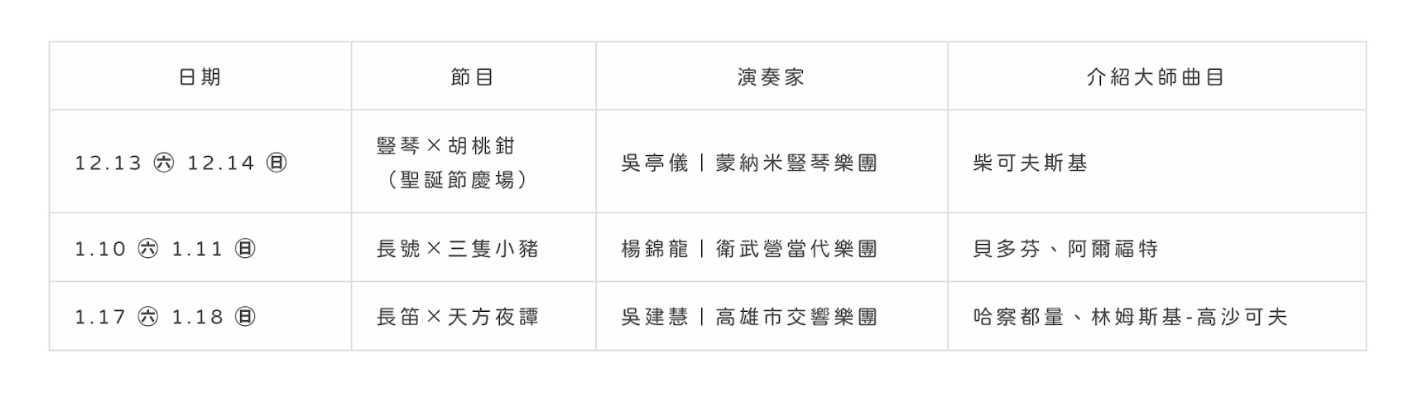 【1~6歲|學齡前】小小音樂大師課:高雄衛武營班近期活動/課程時間?