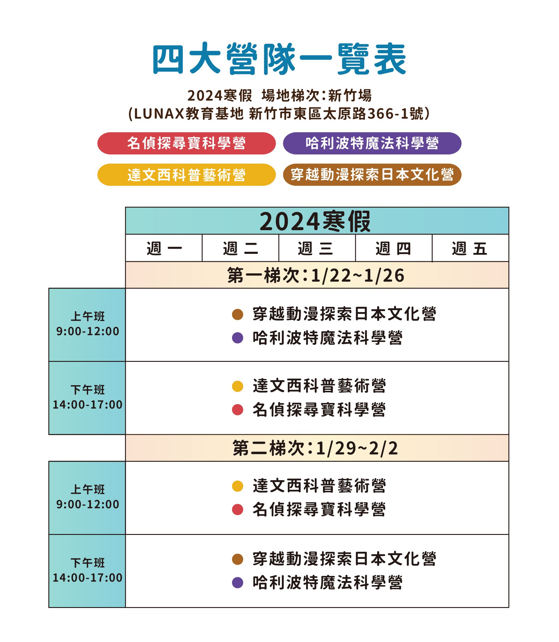 第一梯次|2024 / 01 / 22 (一) ~ 01 / 26 (五) 上午場:每日09:00-12:00