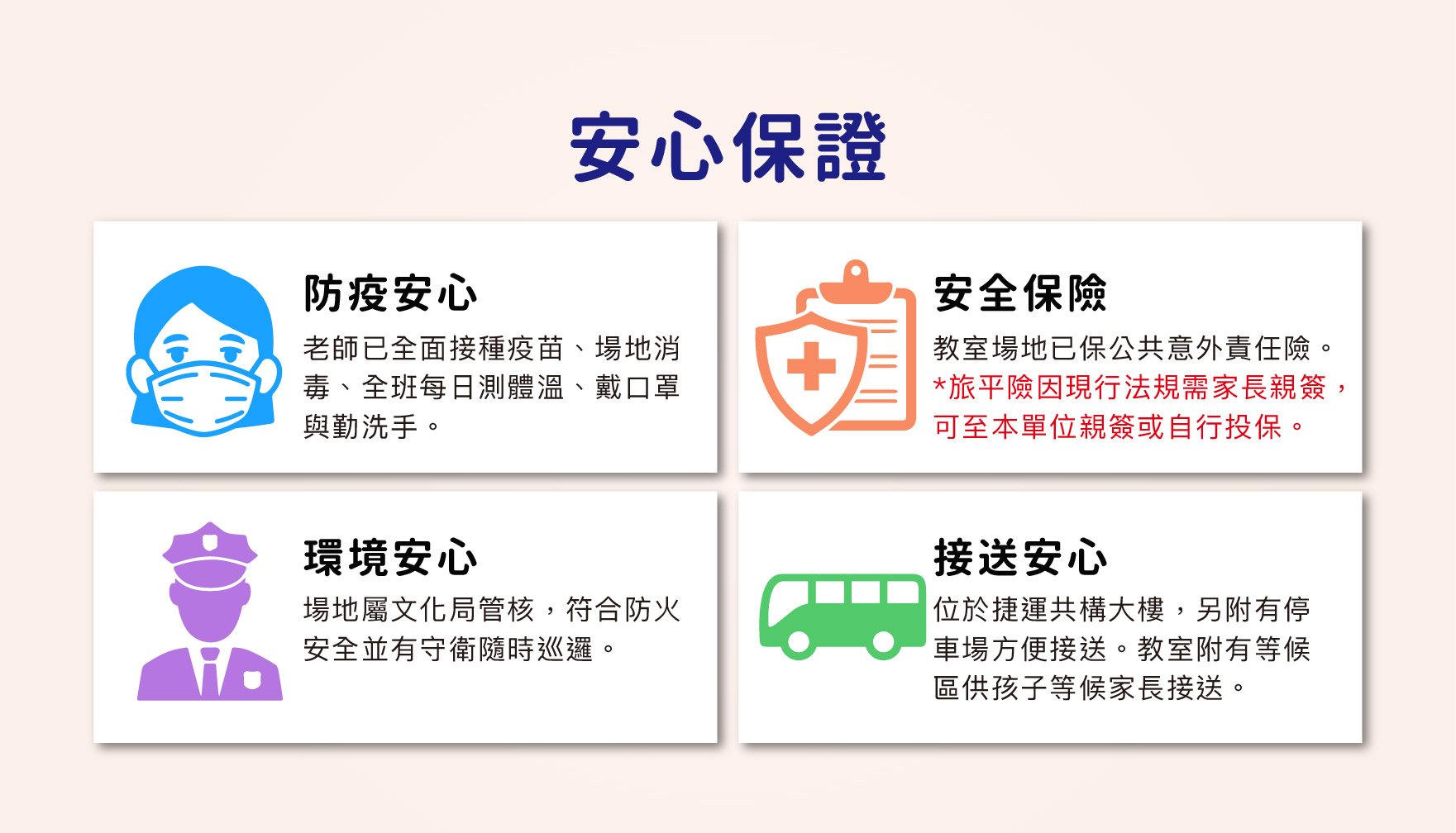 - 費用不包含:課後照護費每小時 $100(可於現場繳費)/ 午餐每餐 $100(請於報名時加購) / 傷害醫療險
