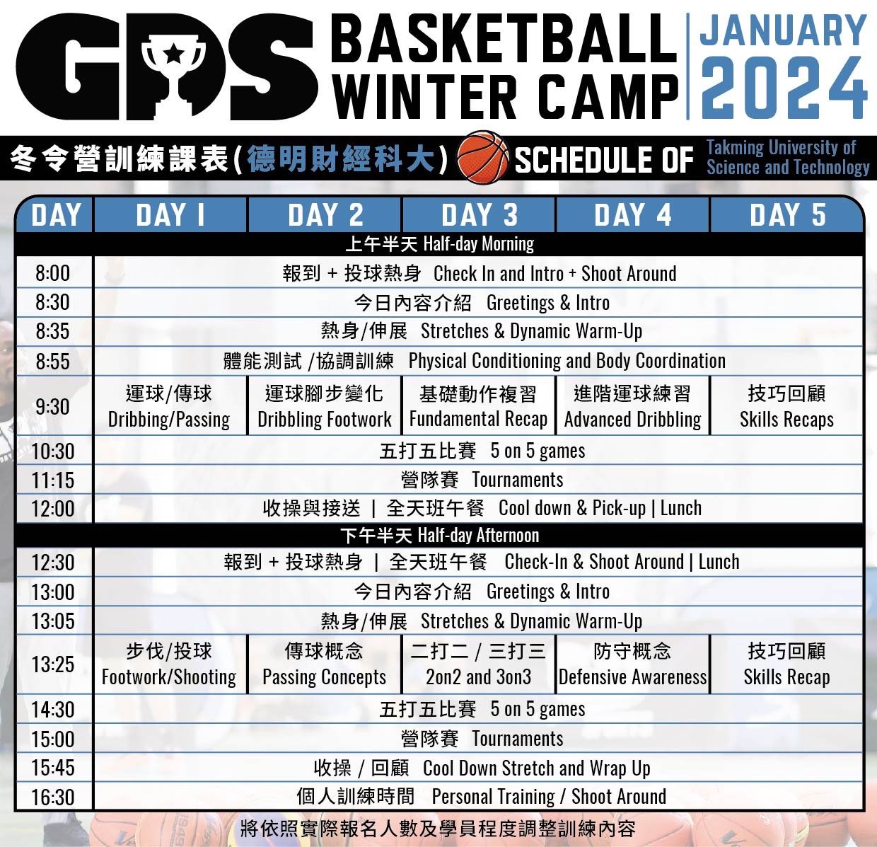 • 費用不包含費用不包含籃球,請每日自行攜帶