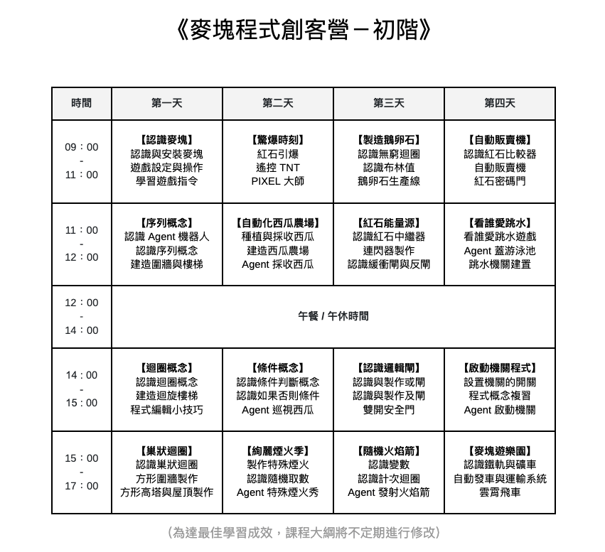 【3~6年級|古亭】麥塊趣味學程式:初階麥塊程式創客四日冬令營開放線上預訂嗎?