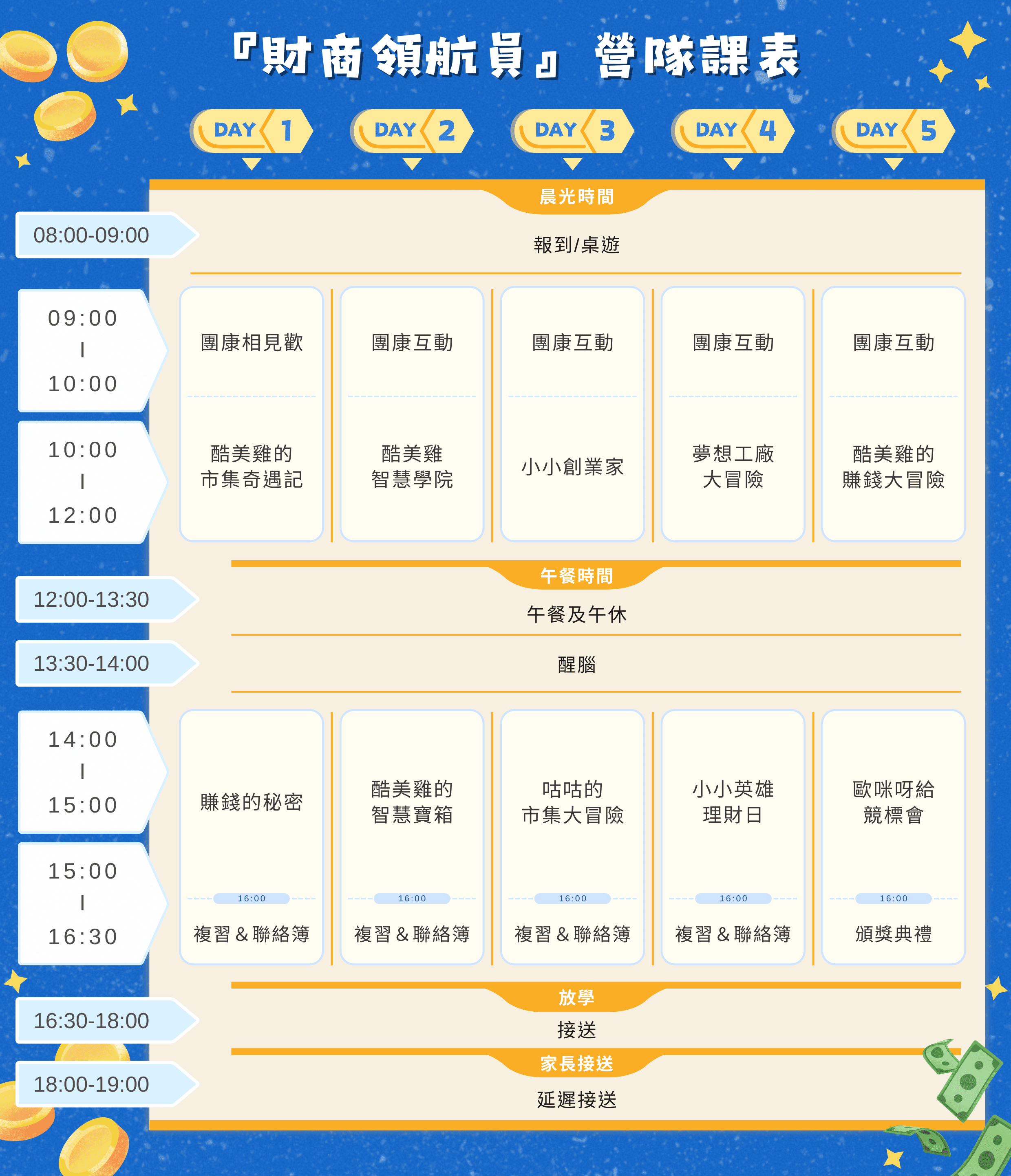 【新店教室 | 6~12歲】財商領航員五日冬令營:兒童理財 X 理財素養進階營隊開放線上預訂嗎?