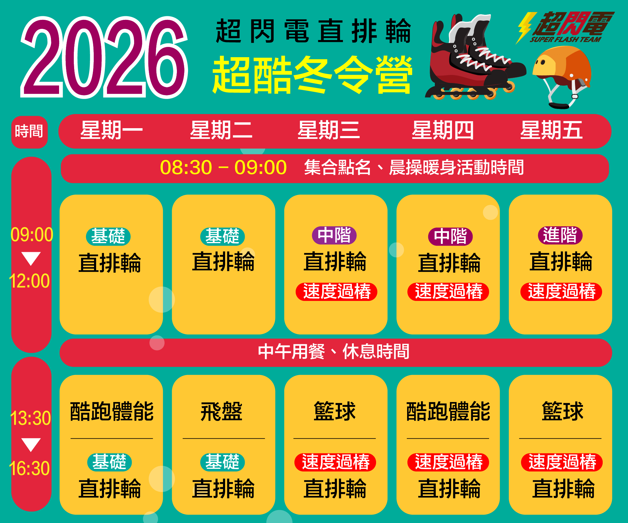 【6~12歲|初階】直排輪五日不過夜冬令營:直排輪基礎 x 速樁技巧近期活動/課程時間?