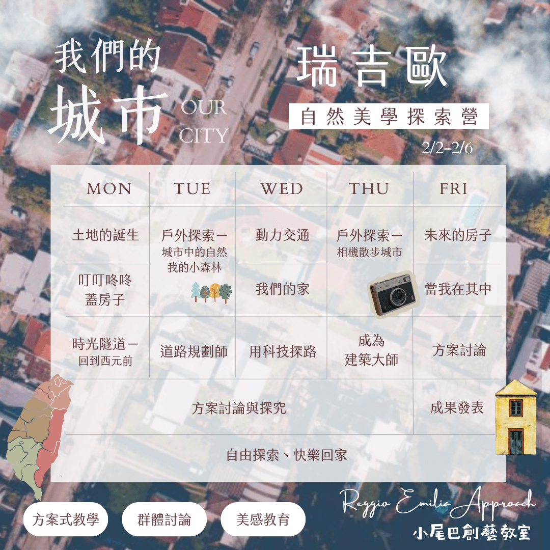 【4~8歲|五日|板橋】瑞吉歐自然美學探索冬令營—我們的城市:義大利瑞吉歐教學法X自然美學近期活動/課程時間?