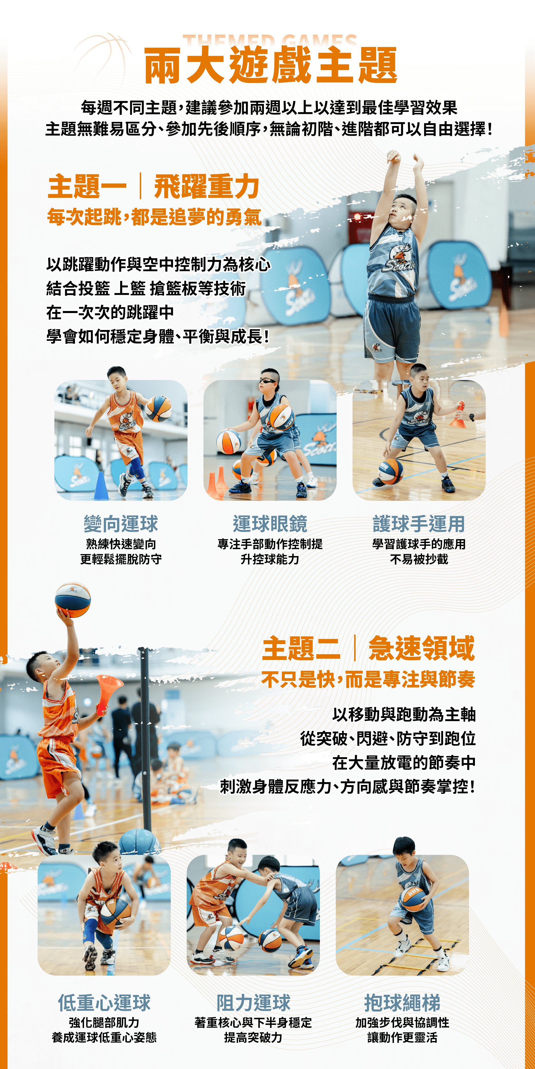 - 活動對象:7 ~ 15 歲(若是5 ~ 6 歲有運動課程經驗孩童,可以評估後報名,課程都以分齡分級方式分班)需自備籃球