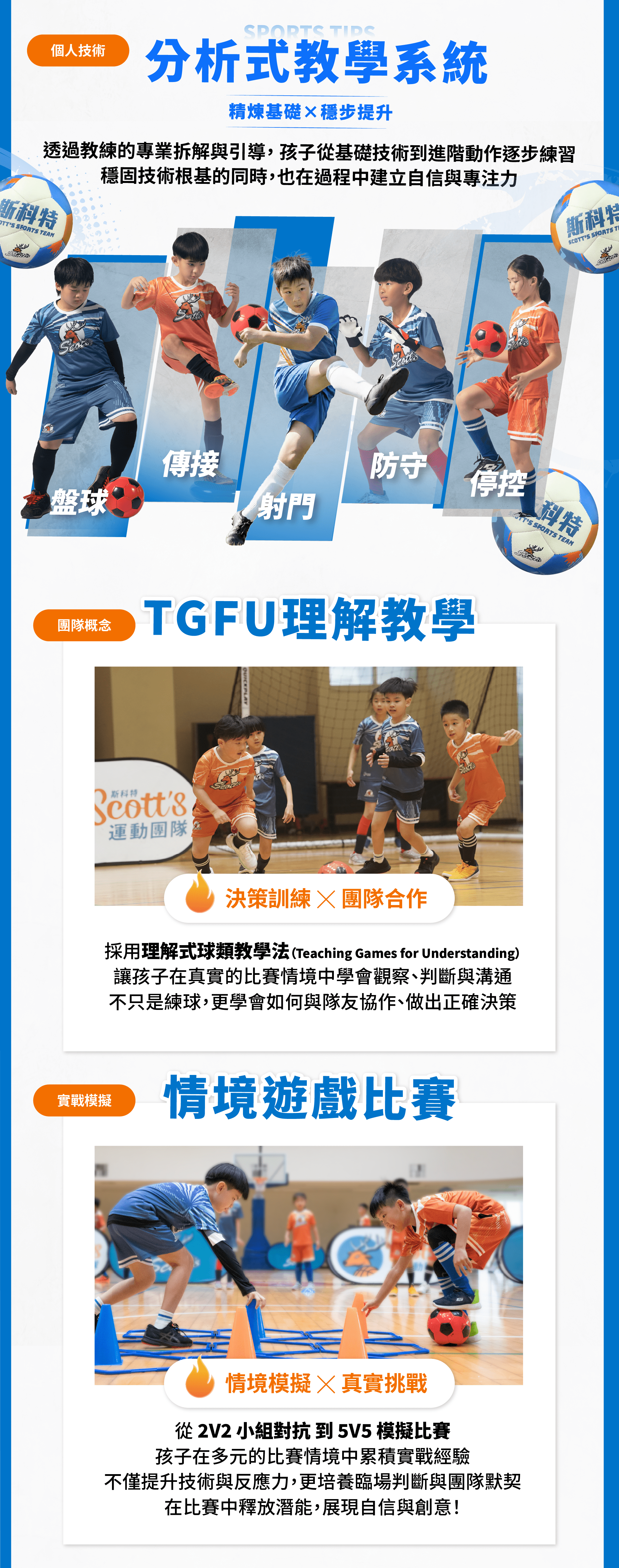 在斯科特,我們相信運動是一種能量,一種讓孩子在成長道路上更穩、更強、更自信的力量。自 2019 年起,我們為 7 ~ 15 歲的孩子打造專業而細緻的運動學習場域──在每一次跨步、每一次呼吸與每一次專注中,看見他們的改變。