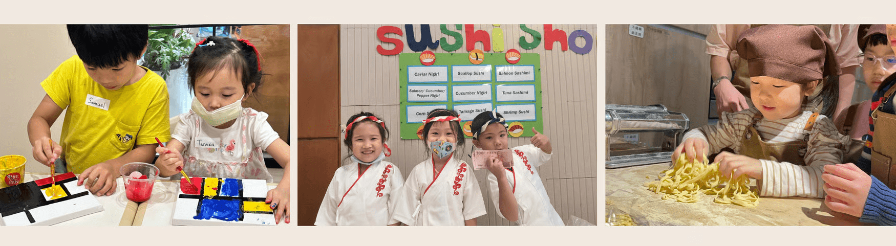 從顏色設計到壽司販售,孩子們親手製作商品,思考材料、價格與呈現方式。穿上制服站上櫃檯,練習介紹商品與收付款流程,在真實模擬情境中理解供需與金錢流動。每一次成交,都是勇氣與溝通力的升級任務。