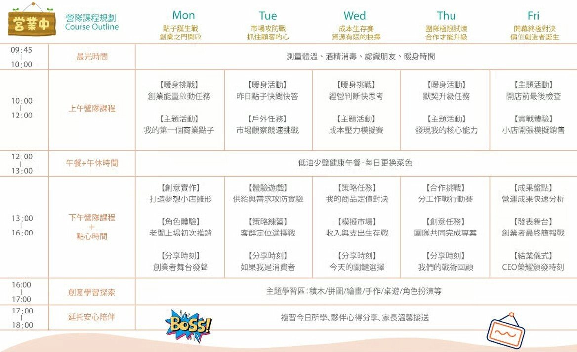 - 營隊總長:五天不過夜營隊,報名時僅需選擇營隊的第一天日期,即包含完整五天不過夜營隊