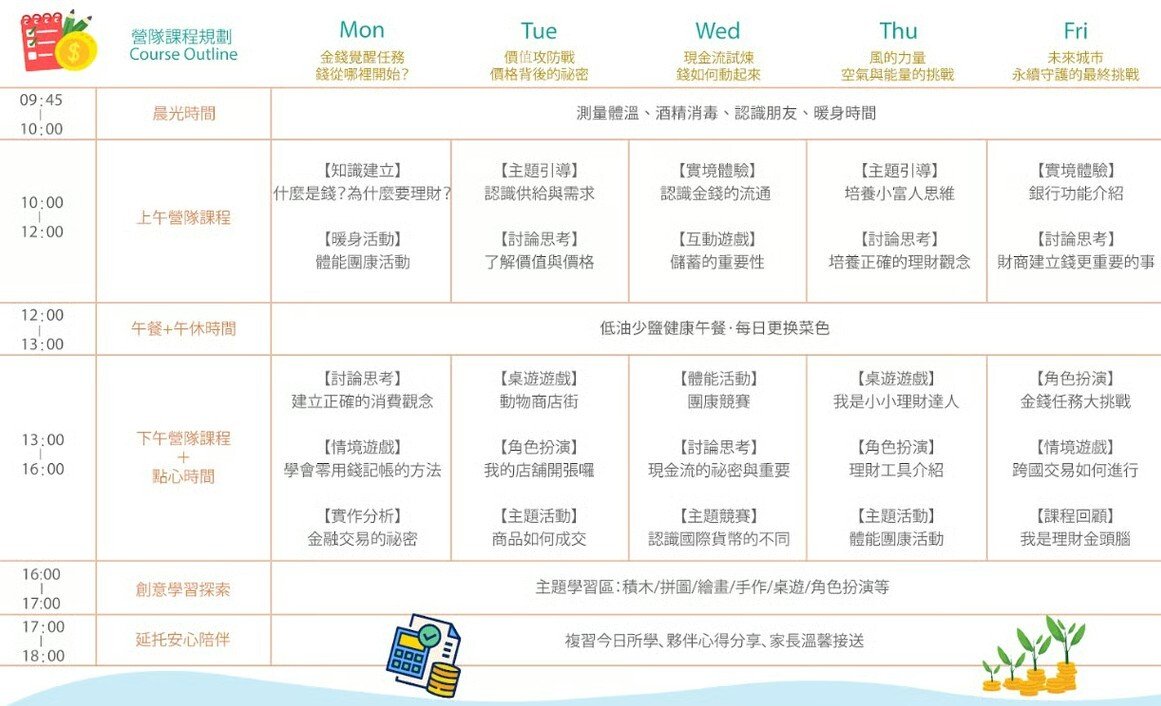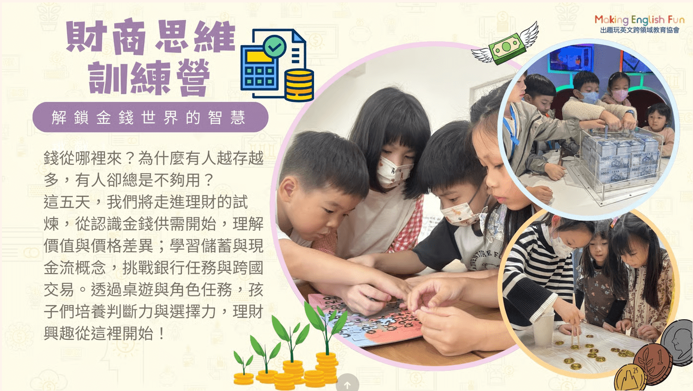 【6~12歲】財商思維訓練五日夏令營 : 中師授課 X 實驗 X 角色扮演 X 實境體驗近期活動/課程時間?