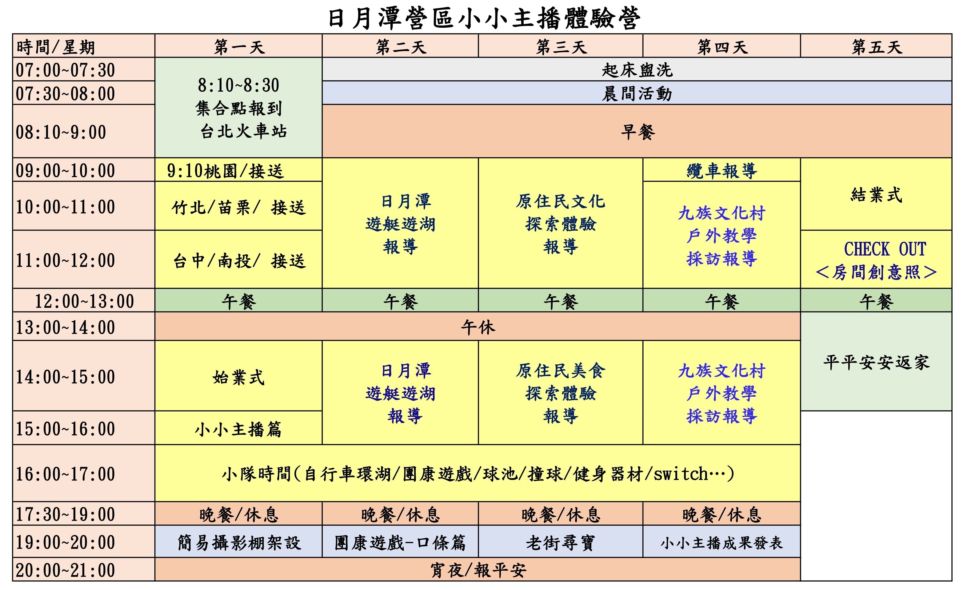 【升小二~國二|南投日月潭】五天四夜小小主播體驗夏令營:遊艇遊湖採訪 X 自行車環湖 X 九族文化村近期活動/課程時間?