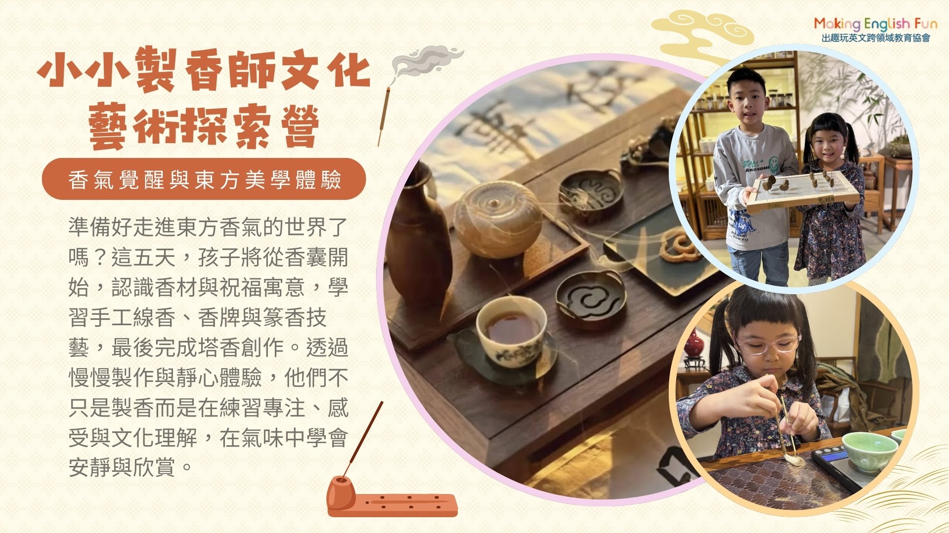 【5~12歲】小小製香師文化藝術探索夏令營 : 中師授課 X 實驗 X 角色扮演 X 實境體驗近期活動/課程時間?