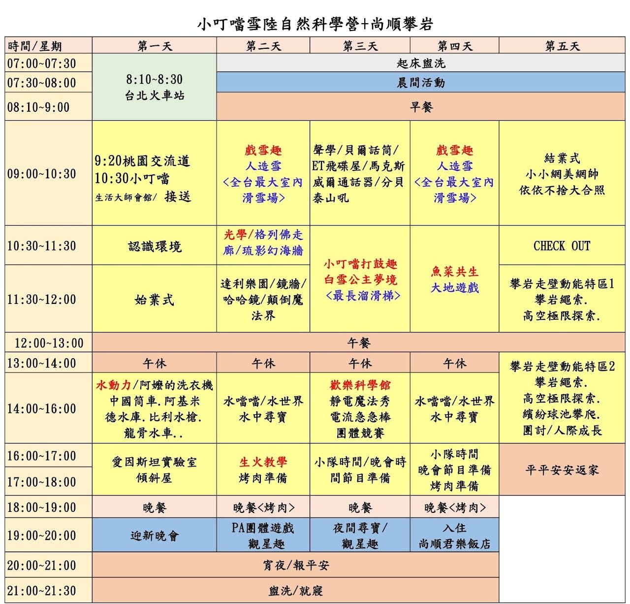【升小二~國二】新竹小叮噹+苗栗尚順五天四夜自然科學夏令營:玩雪X烤肉X超好玩團康X尚順高低空攀岩開放線上預訂嗎?